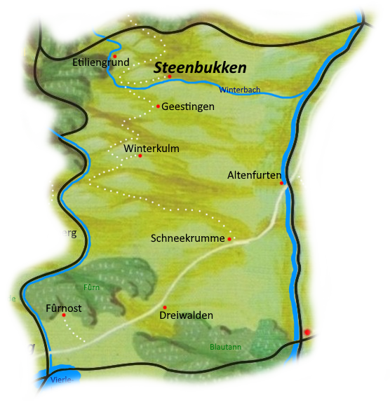 Steenbukken (340 Einwohner) ein Dorf in direkter Nähe zu Burg Firnhag. Es gibt einen Peraine- und einen Ifirntempel sowie einen Phexschrein.