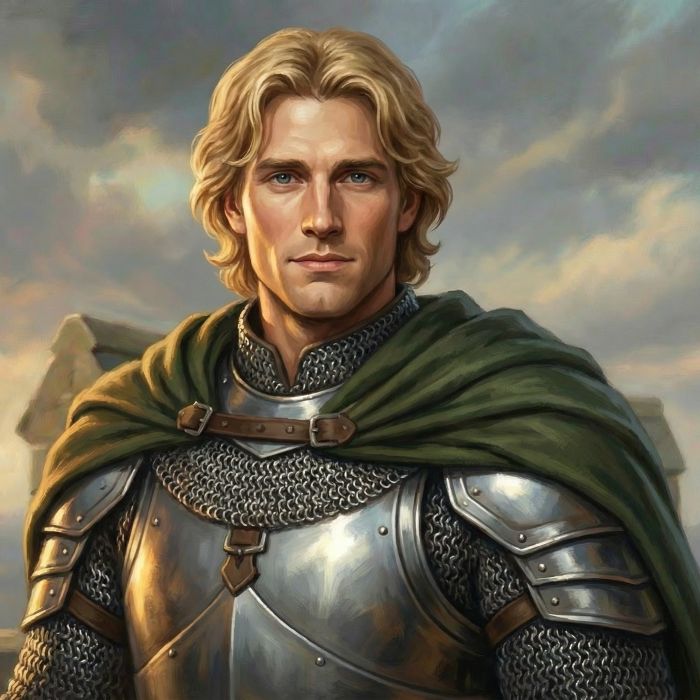 Lebensfroher Ritter, dem man seine Kampfkraft im ersten Moment nicht ansieht. Geselliger Minnesänger und passionierter Jäger.