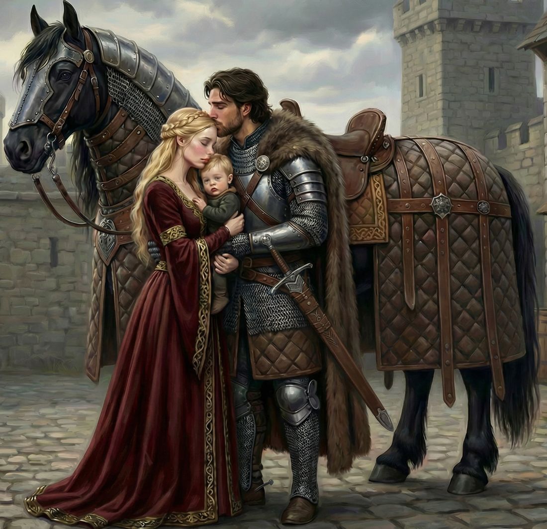 Nachdem der Burgherr sein Gefolge abgegangen war, wandte er sich dem Eingang des Palas zu. Dort stand seit einiger Zeit seine Frau Gwendolyn mit dem kleinen Walram auf dem Arm. Als sie sah, dass er fertig war, kam sie langsam auf ihn zu.