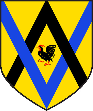 Auf Gold eine Spitze in schwarz, verschränkt mit einem Sparren in blau. Im Herzschild auf Gold ein Hahn in schwarz, bewehrt in rot, mit ausschlagender Zunge und Kamm in rot.