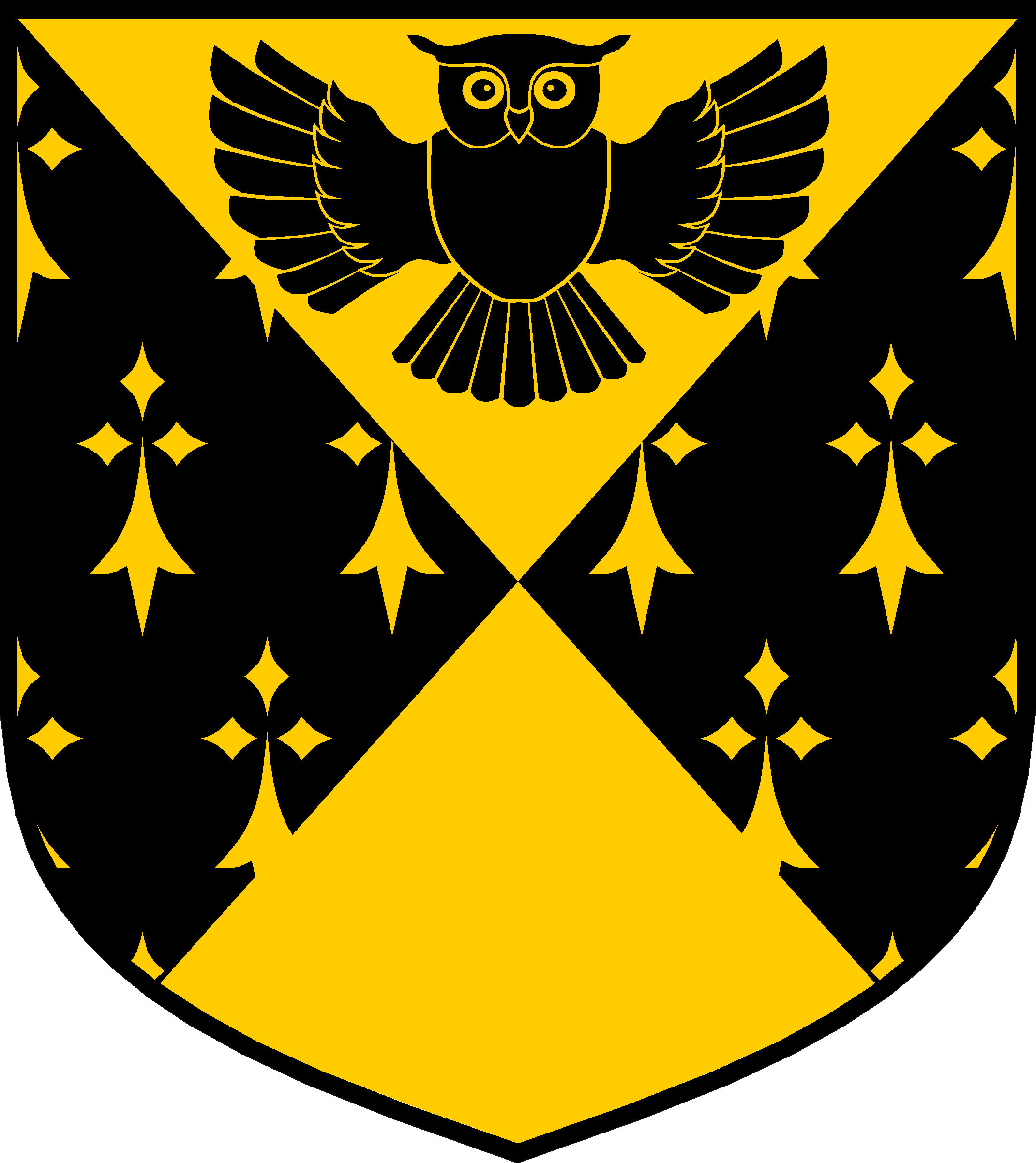 Schräg geviert von Gold nach goldenem Gegenhermelin, im 1. Feld belegt mit einer schwarzen, auffliegenden Eule.