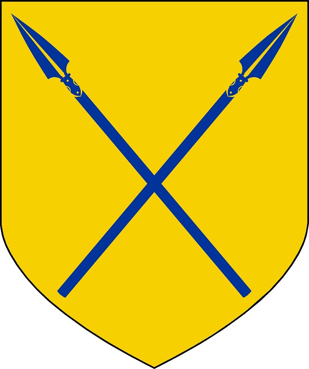 Auf Gold zwei gekreuzte, blaue Speere