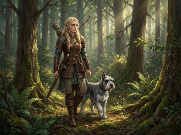 - Grimmberta Elfwid von Wolfenthann: ist die Ritterin von Travienswacht. Sie ist eine begeisterte Jägerin von schlanker Statur, die ihr so manchen Vergleich mit den Elfen der nahen Herbstlaub-im-Nebel-Sippe einbringt.