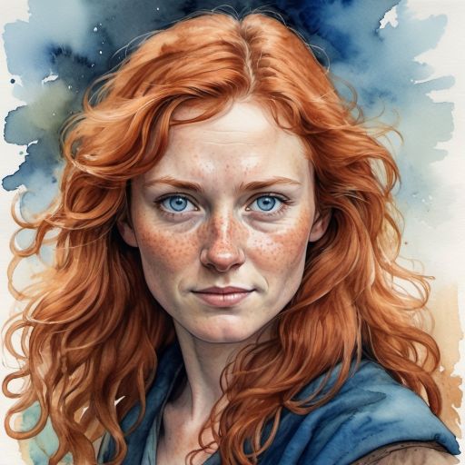 Kurzprofil: Stoische Adelige mit eindrucksvoller roter Lockenmähne und tiefblauen Augen, die mit Standesdünkel nicht viel anfangen kann; gerüchteweise eine Heidin