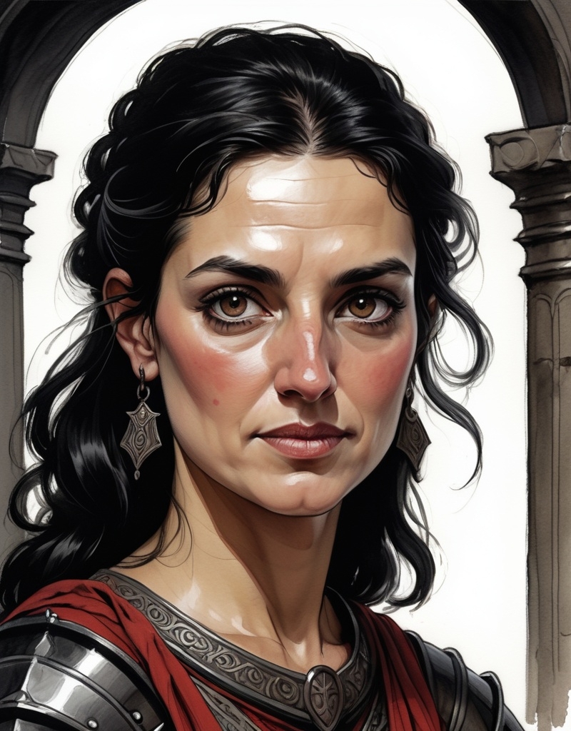 Weitgereiste, äußerst kampferfahrene Veteranin, der man nichts mehr vormachen kann, willensstark, sehr ehrenhaft, prinzipientreu, loyal zur Herzogin und stark rondragläubig.