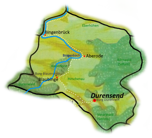 Bingenbach - Nebenfluss des Finsterbachs, der im Durenwald in Herzoglich Dornstein entspringt und durch Kaiserlich Blaubinge sowie die Baronie Baronie Urkentrutz fließt.